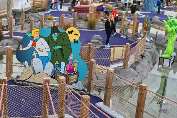 Each themed hole brings the mystery to life with vibrant scenes, classic villains, and playful challenges around every corner. As you make your way through the course, you’ll encounter iconic moments and characters from the animated series, including Scooby‑Doo, Shaggy Rogers, and the rest of the Mystery Inc. crew. Whether you’re solving clues or just aiming for a hole-in-one, the experience blends family-friendly adventure with lighthearted thrills.